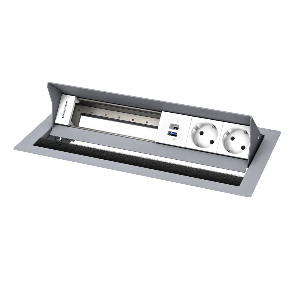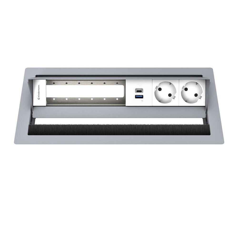 | Naam: | Kindermann CablePort Standard² - 6-voudig - 2x Stroom, 1x USB lader (C + A) - RAL9006 |