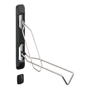 Wanneer je de fiets gebruikt of als de fiets bij de fietsenmaker staat en deze dus niet aan de wand hangt, dan kun je de beugel eenvoudig inklappen. Daardoor zal hij nauwelijks ruimte in beslag nemen en hangt deze ook niet in de weg.