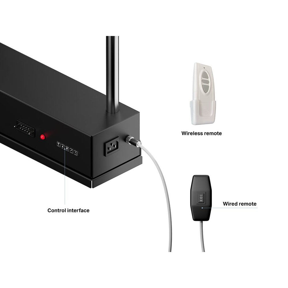Of hij nu wordt ingebouwd in meubels, achter een kast wordt geplaatst of wordt geïntegreerd in AV-installaties, deze gemotoriseerde lift voegt zowel functionaliteit als elegantie toe. Bediening is mogelijk via een bekabelde of draadloze afstandsbediening en biedt een soepele, stille beweging met een maximaal draagvermogen van 60 kg, waardoor hij compatibel is met een breed scala aan schermen..