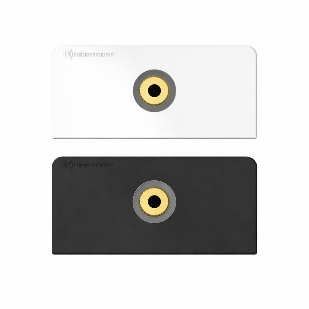 De 3.5mm stereo audio module is een half inbouwraam groot, hetgeen inhoud dat er dus 2 in één montageraam kunnen worden gemonteerd. Zo kun je er voor kiezen om zowel een 3.5mm stereo audio aansluiting als een VGA aansluiting of een 3.5mm stereo audio en een HDMI aansluiting in één montageraam te monteren. Je kunt dus meerdere aansluitingen in één wandcontactdoos bouwen, of dit nou in de wand, op de wand of in een wandgoot is, met het Konnect Design Click systeem van Kindermann is het allemaal mogelijk.