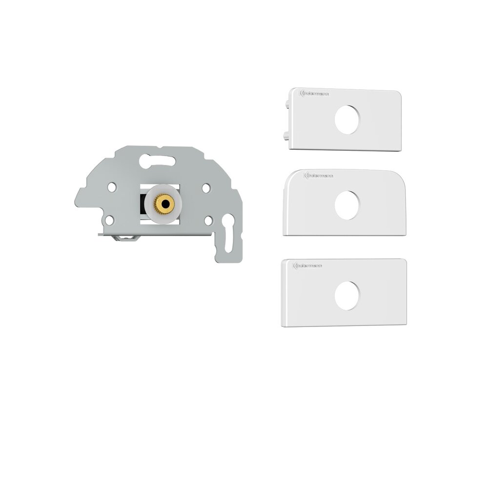 Onderdeel van het Konnect Design Click systeem van Kindermann. Een systeem dat gemonteerd kan worden op zo goed als elk type schakelmateriaal of het nou Busch Jäger, Jung, Gira, Peha etc. is deze aansluitingen kunnen op de montage ramen, in -en opbouwdozen van deze schakelmaterialen worden gemonteerd zonder gereedschap.