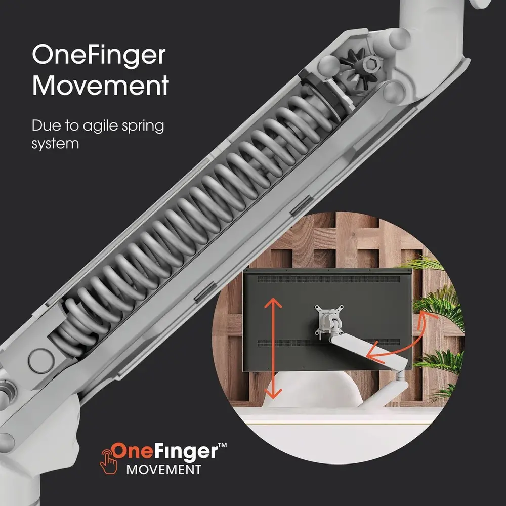 De monitorarm is geschikt voor 2 schermen van minimaal 10 inch tot maximaal 34 inch met een VESA gatenpatroon van minimaal 50x50 mm tot maximaal 100x100 mm. De schermen kunnen op een hoogte ingesteld worden op de paal en vervolgens kun je met één vinger de hoogte verstellen dankzij de dynamische armen die voorzien zijn van een gasveer. Uiteraard zijn de schermen volledig te draaien op meerdere punten en kun je het scherm ook tot 180° roteren. Daarnaast is hij ook 20° voorover en 105° achterover te kantelen.
