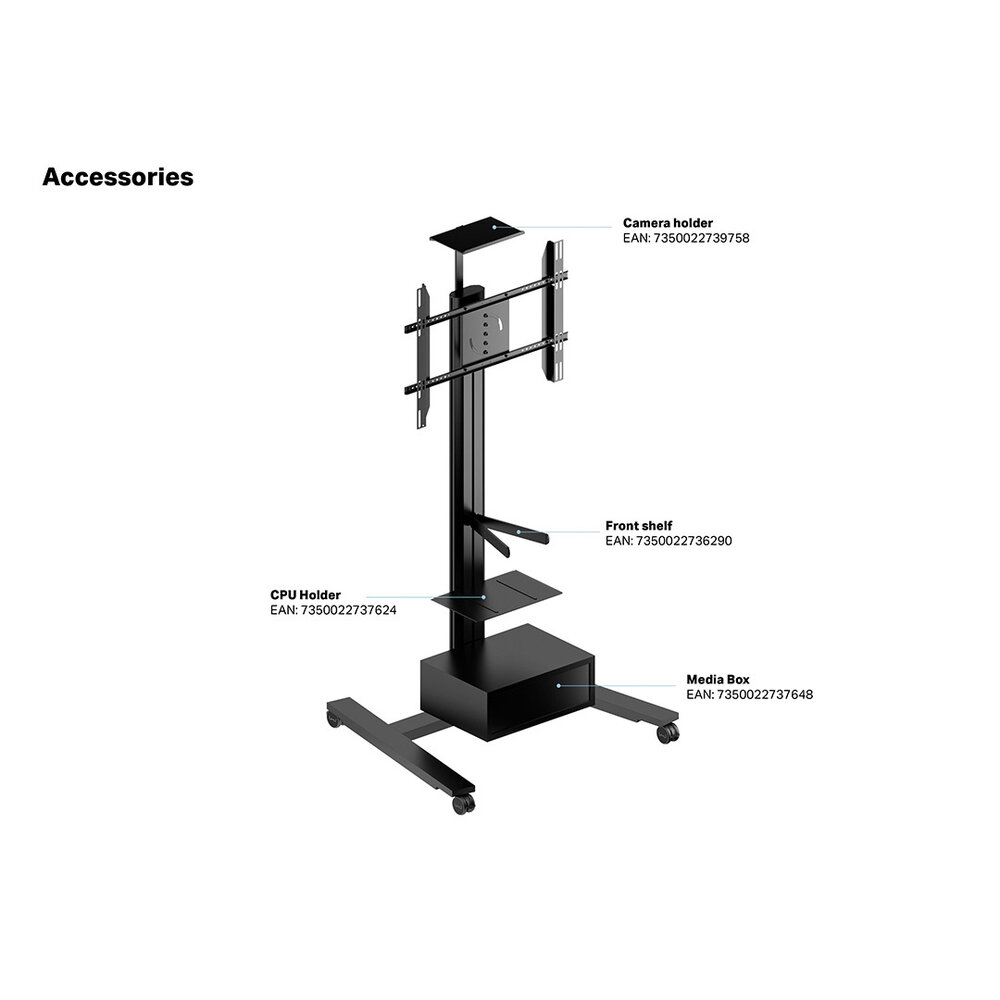 Voor deze TV standaard zijn er diverse uitbreidingsmogelijkheden en opties beschikbaar zo kun je bijvoorbeeld uitbreiden naar 2x schermen onder elkaar, zodat je 4 schermen op één standaard heb. Houdt hierbij wel rekening met het gewicht. Dat zal onder de 75 kg moeten blijven.