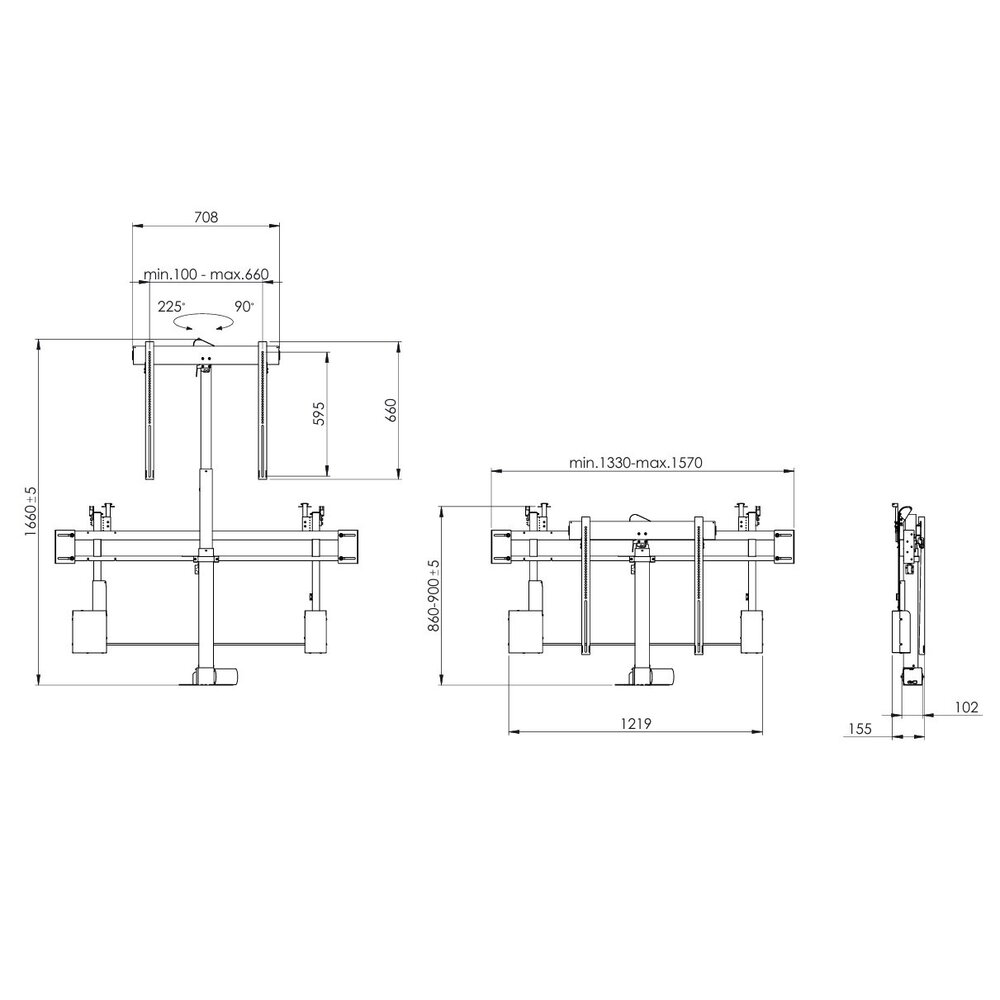 | Totale hoogte verstelling TV lift: | 823 mm t/m 1665 mm (bovenkant scherm) |