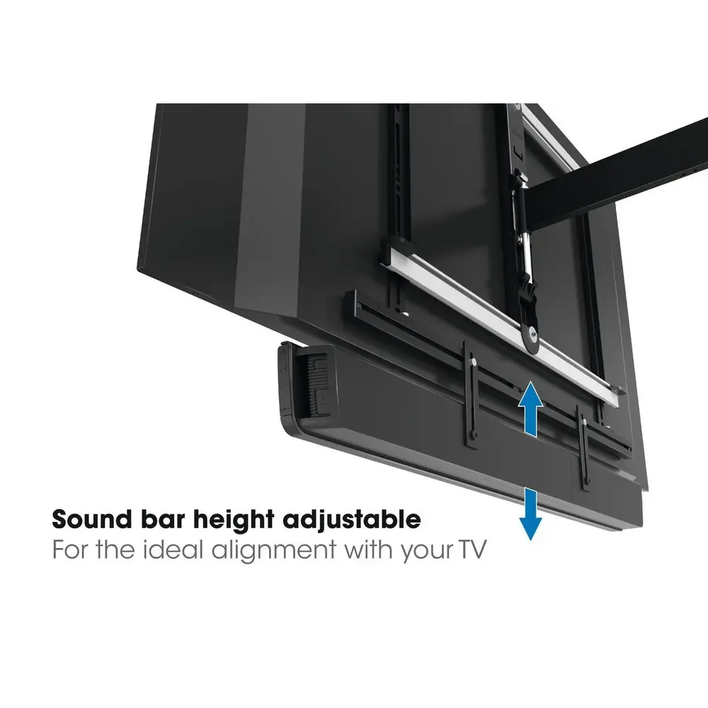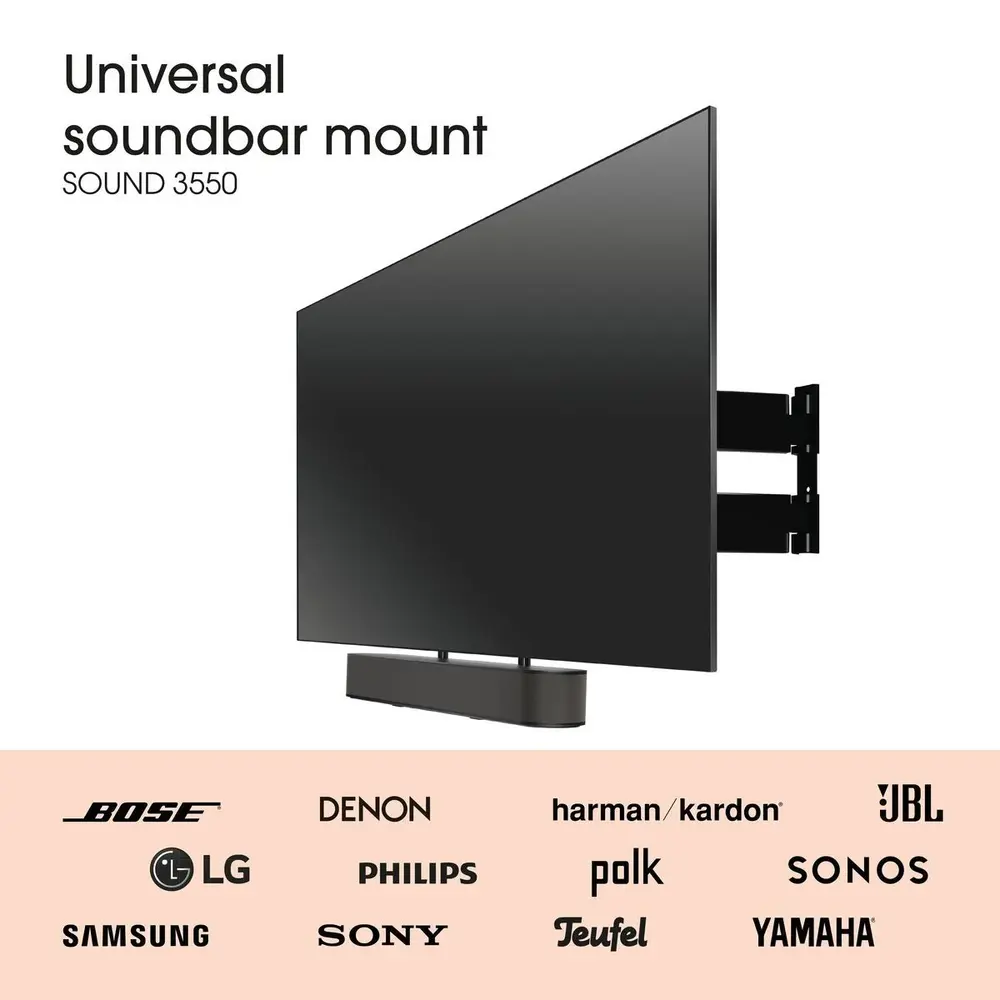 Zolang de soundbar onder de 6,5 kg weegt, is dit sounbarframe geschikt om aan je draaibare TV beugel te hangen en de soundbar met de TV te laten mee draaien. De SOUND 3550 is precies wat je nodig hebt om vanuit iedere hoek tv te kunnen kijken zonder in te leveren op geluidskwaliteit.
