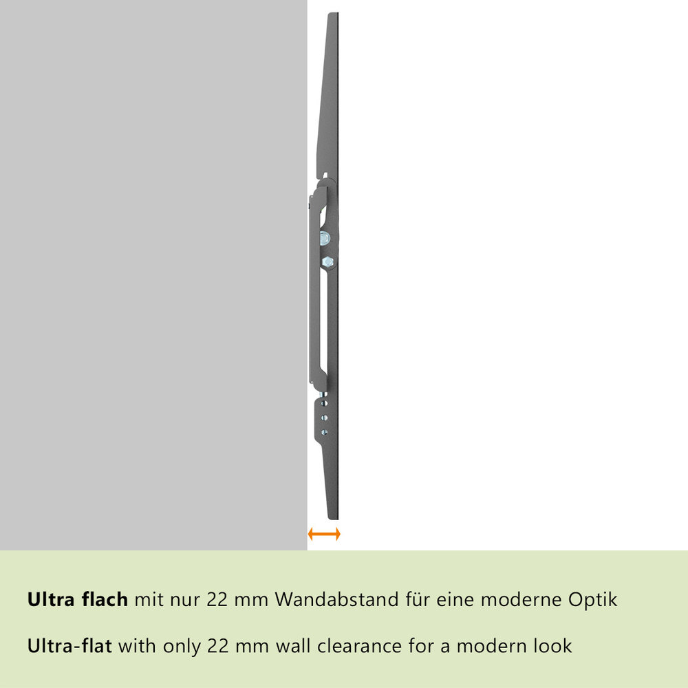Slechts 22 mm vanaf de wand tot de achterzijde van de TV