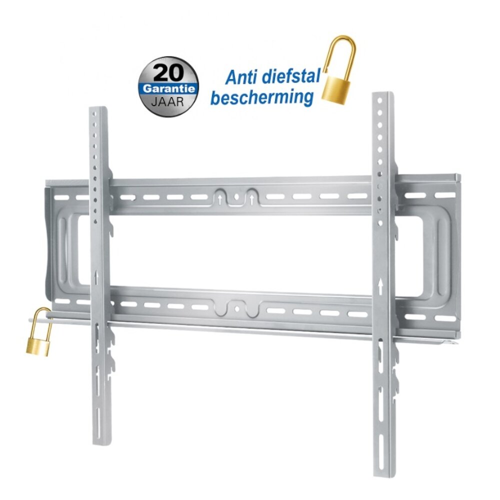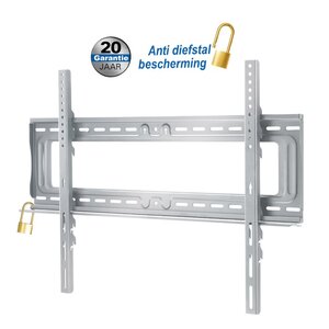 Een TV beugel geschikt voor schermen met een VESA gatenpatroon van minimaal 200 x 200 mm tot maximaal 800 x 600 mm en geschikt voor een gewicht tot maar liefst 100 kg. Het scherm komt slechts 40 mm van de wand af en is zeer eenvoudig te installeren. Het scherm kan worden geborgd dankzij een borgpen waarmee je de verticale armen met de TV aan de wandplaat borgt vervolgens kun je deze afsluiten met het meegeleverde hangslot.