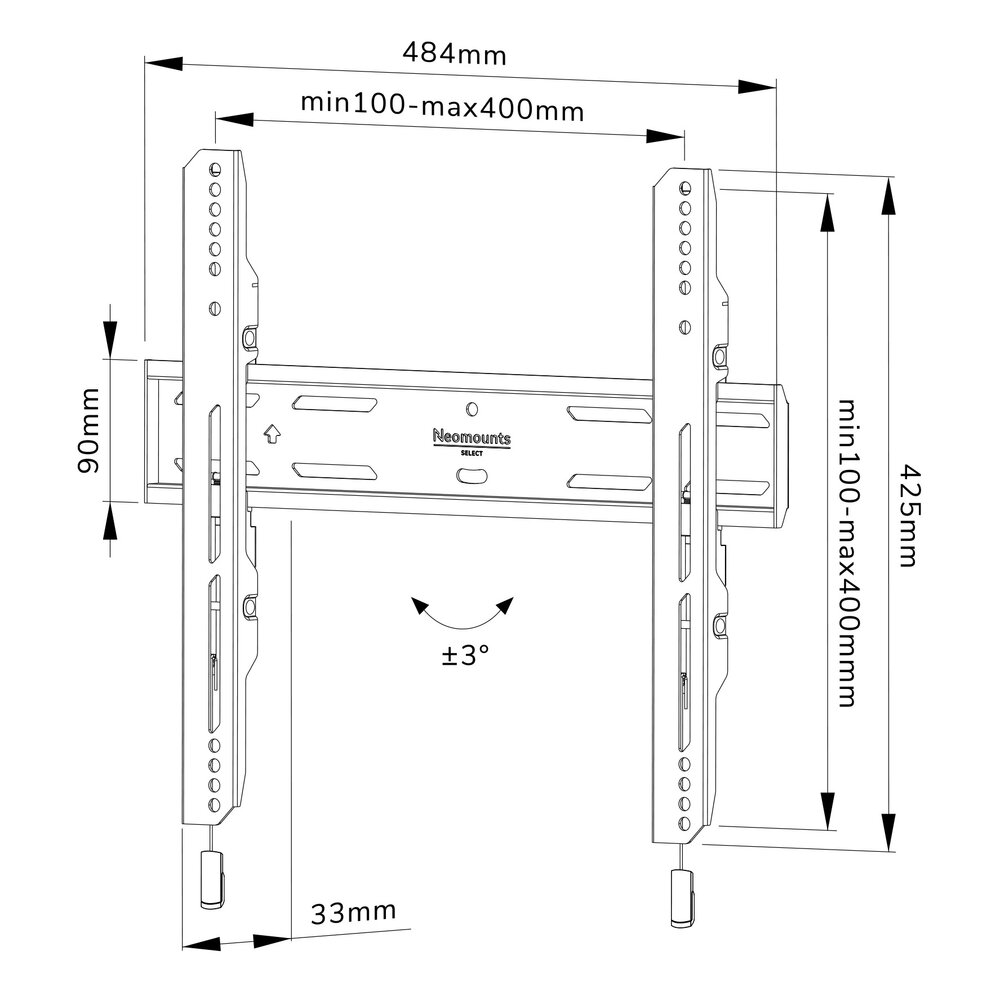 Een zeer degelijke lijn wandbeugels van een goede kwaliteit staal en 3.3 cm diep, wat wil zeggen dat de achterzijde van de TV dus op 3.3 cm van de wand af komt. Men wil vaak de TV zo strak mogelijk tegen de wand, maar houd daarbij geen rekening met de wegloop van kabels en die 3.3 cm is door Neomounts gekozen, omdat dit precies genoeg is voor de meeste bekabeling om een veilige bocht te kunnen maken en bij TV's met een stekker die er van achter ingestoken wordt goed aan te sluiten.