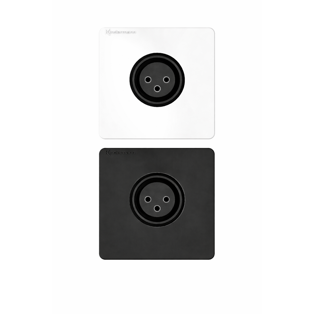 Kindermann is een specialist als het gaat om afmonteer systemen, of dit nou op de wand is of in de tafel. Kindermann heeft professionele oplossingen met een luxe uitstraling van een uitstekende kwaliteit. De modules van het Konnect Design systeem zijn geschikt voor elk soort installatie materiaal en in de meeste gevallen een half afdekraam groot. Dit betekent dus dat er 2 van deze modules in één afdekraam gaan. In dit specifieke geval is de voorkant van de module voorzien van een 6.3 mm female aansluiting, de achterzijde is een soldeer aansluting voor de 6.3mm audio aansluiting.